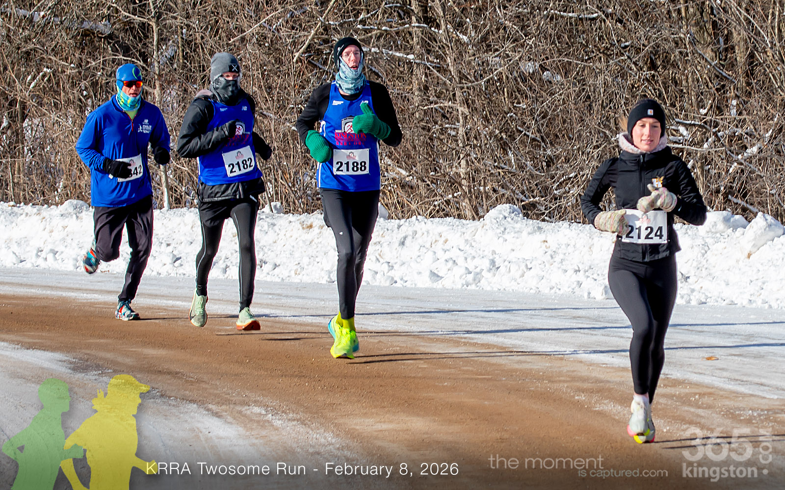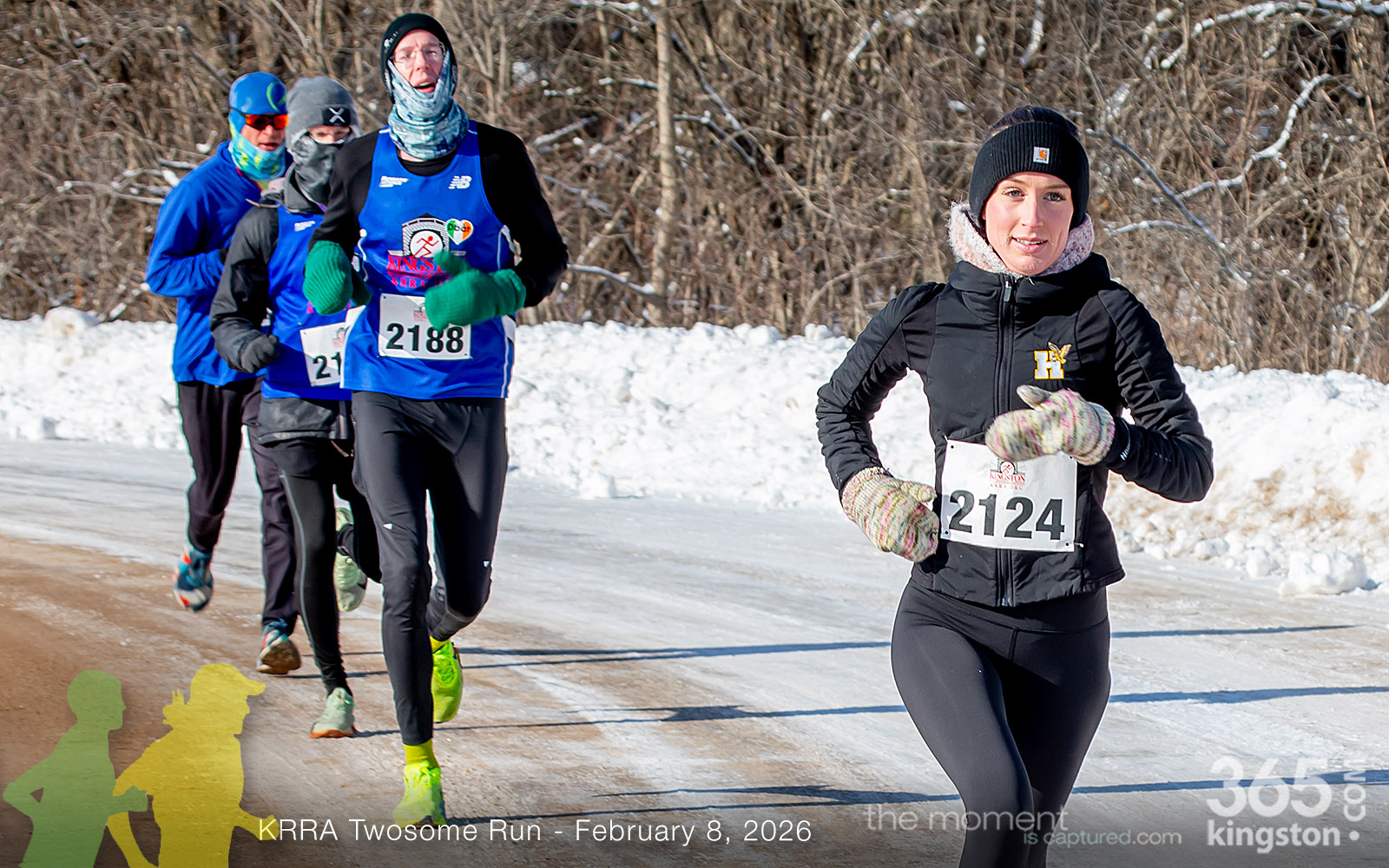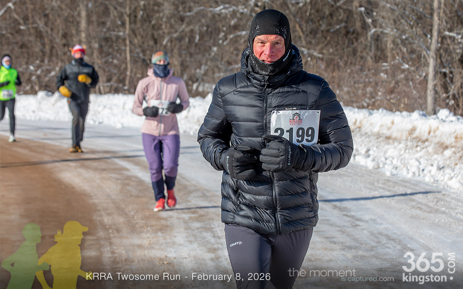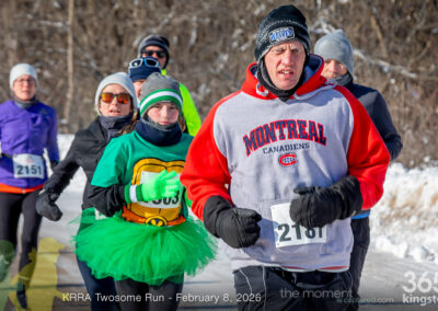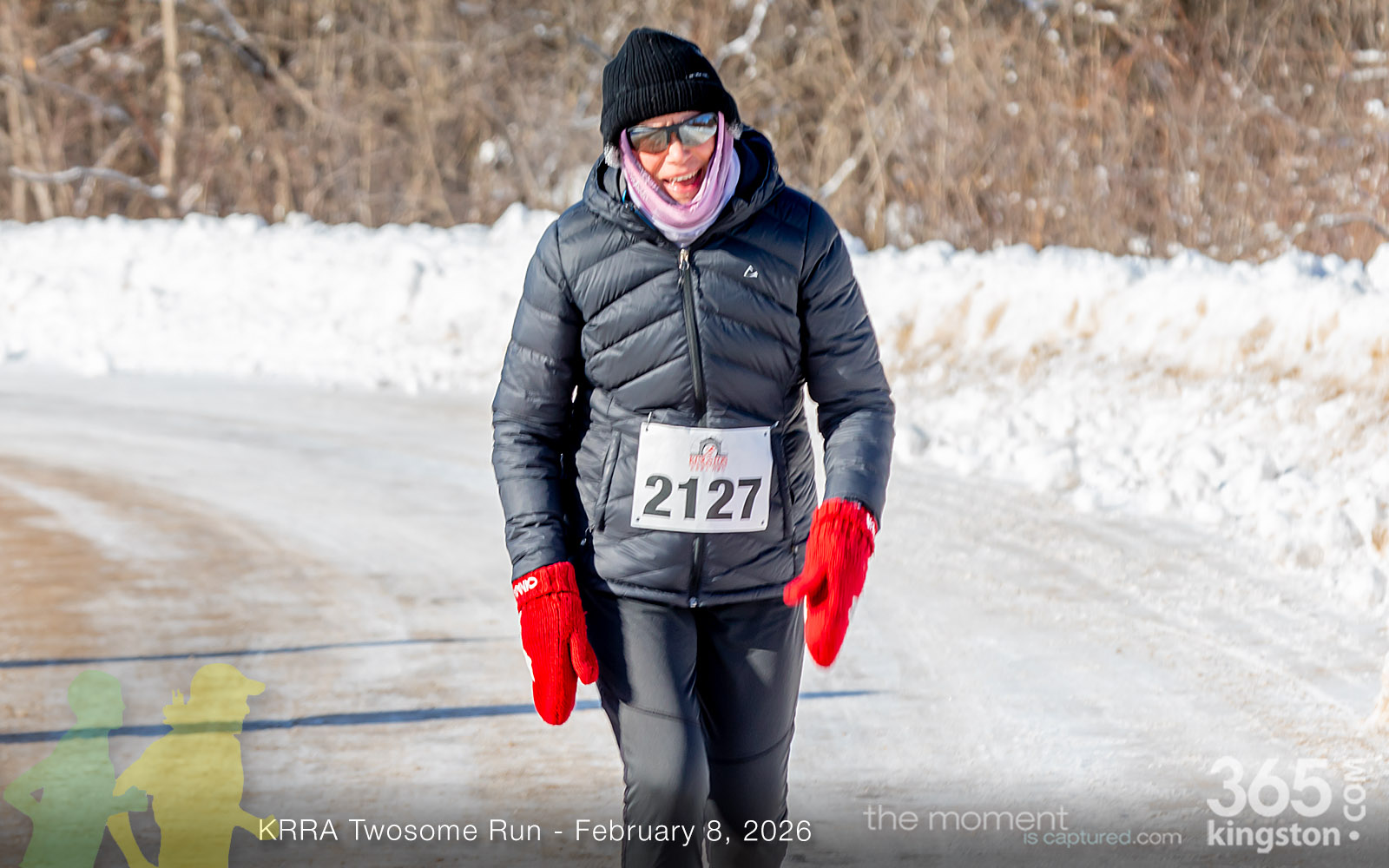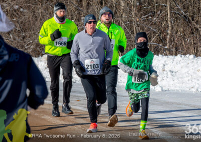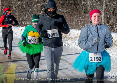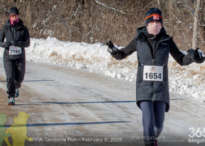 The coldest Kingston road race ever? Perhaps. But that didn’t stop 128 dedicated runners to bundle up, strap on their runners with the best tread, and earn their Twosome socks. To all who ran the event: congratulations! You are winter warriors. Thanks goes out to KRRA’s Race Director Stuart, volunteers, and sponsors who made this event a success.