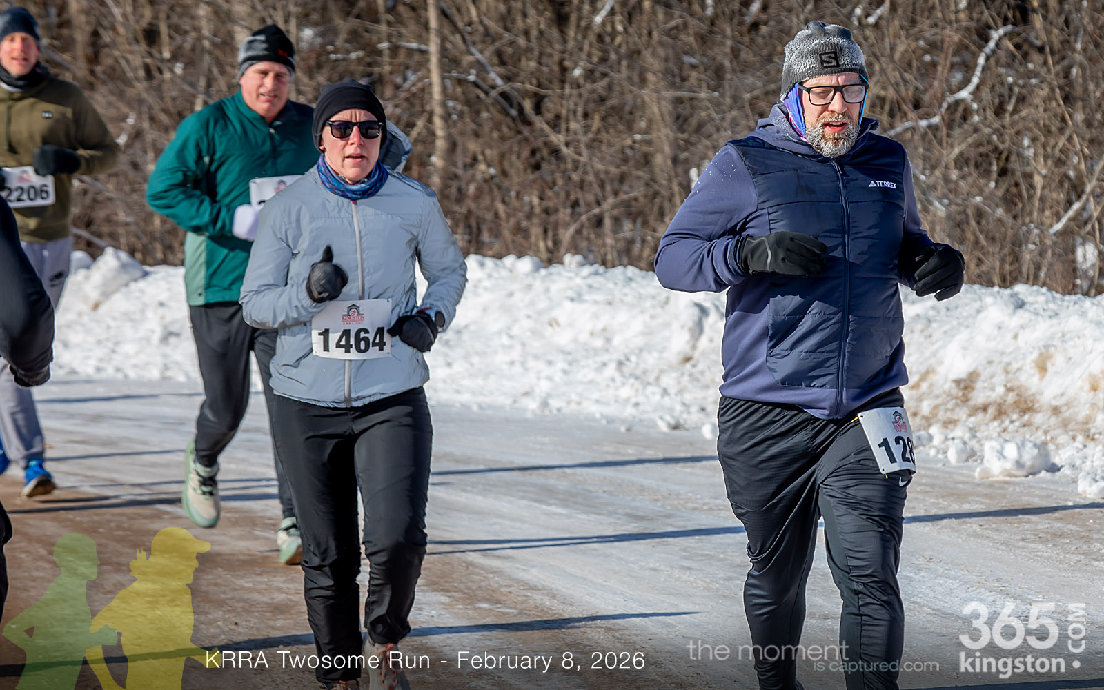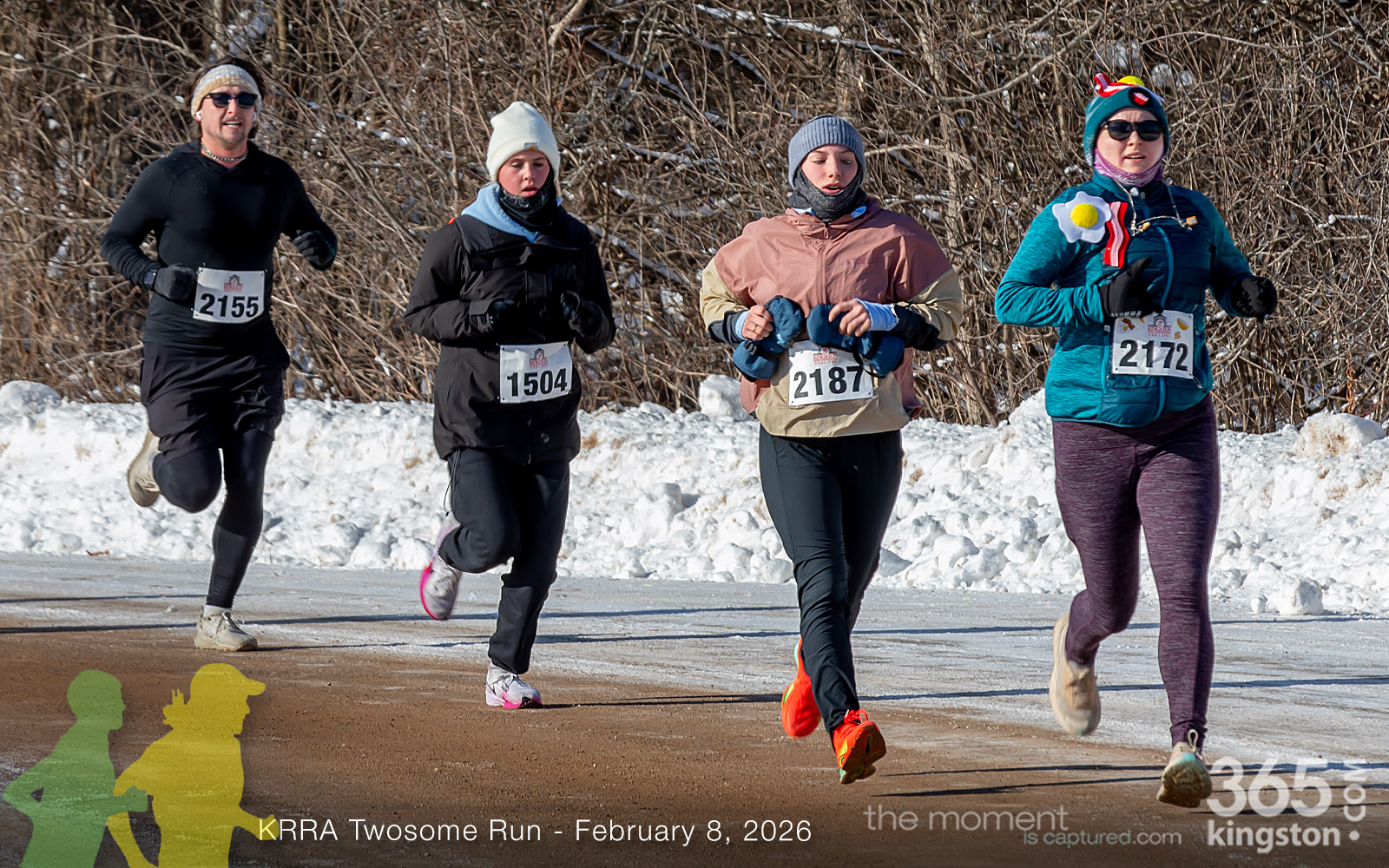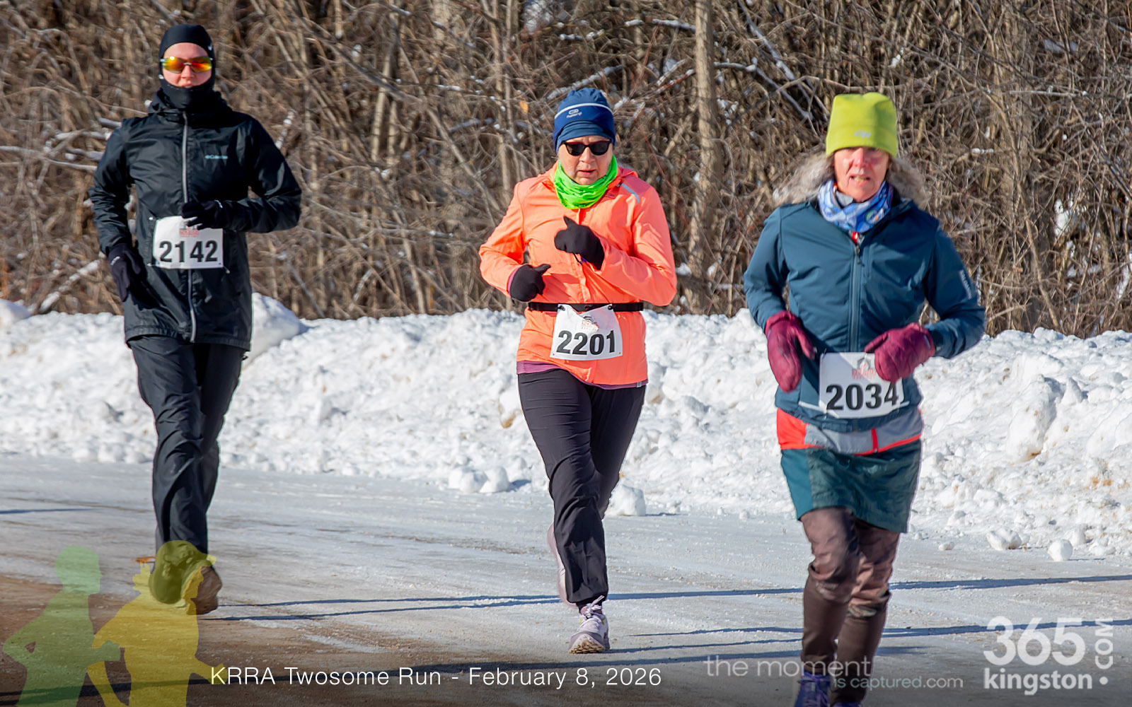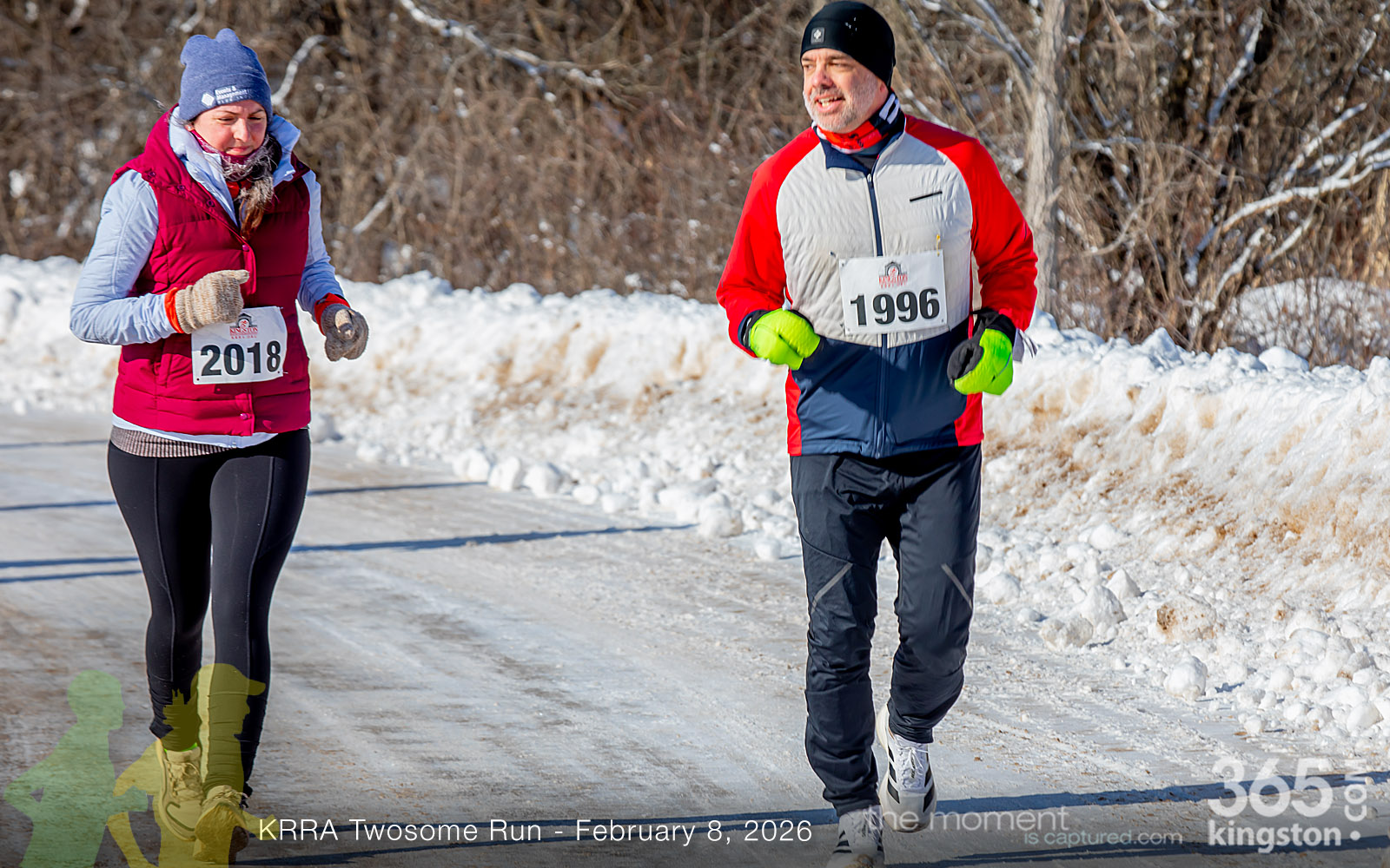 The coldest Kingston road race ever? Perhaps. But that didn’t stop 128 dedicated runners to bundle up, strap on their runners with the best tread, and earn their Twosome socks. To all who ran the event: congratulations! You are winter warriors. Thanks goes out to KRRA’s Race Director Stuart, volunteers, and sponsors who made this event a success.