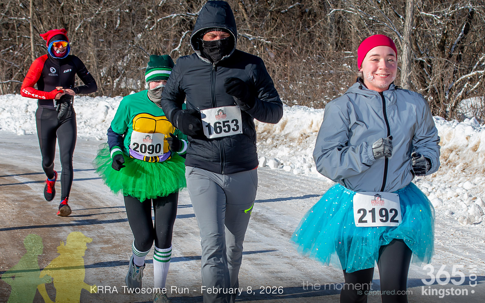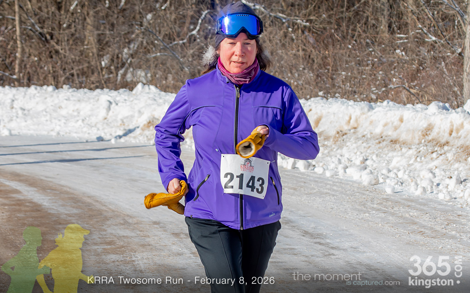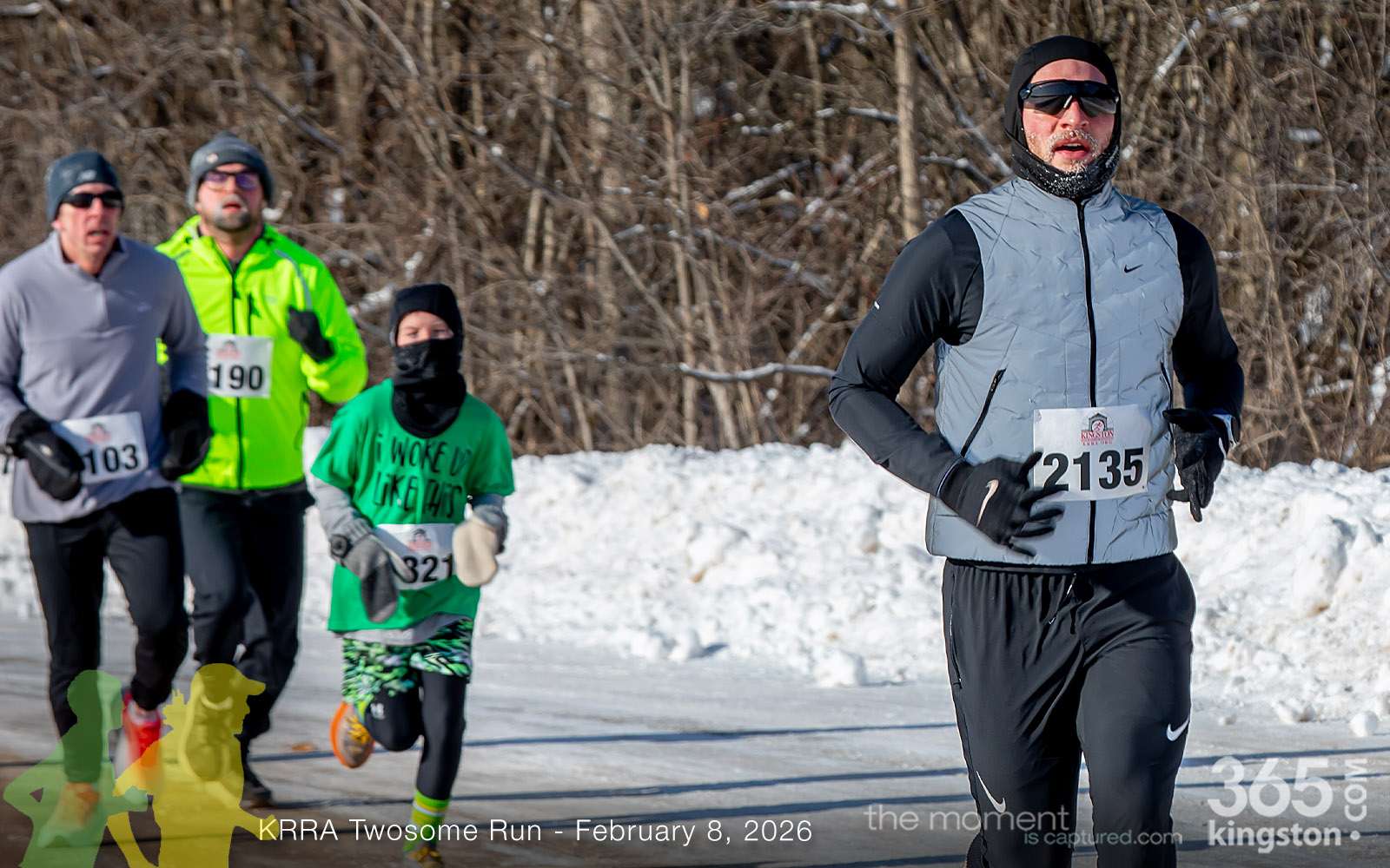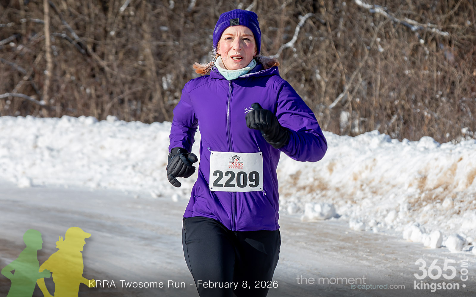 The coldest Kingston road race ever? Perhaps. But that didn’t stop 128 dedicated runners to bundle up, strap on their runners with the best tread, and earn their Twosome socks. To all who ran the event: congratulations! You are winter warriors. Thanks goes out to KRRA’s Race Director Stuart, volunteers, and sponsors who made this event a success.