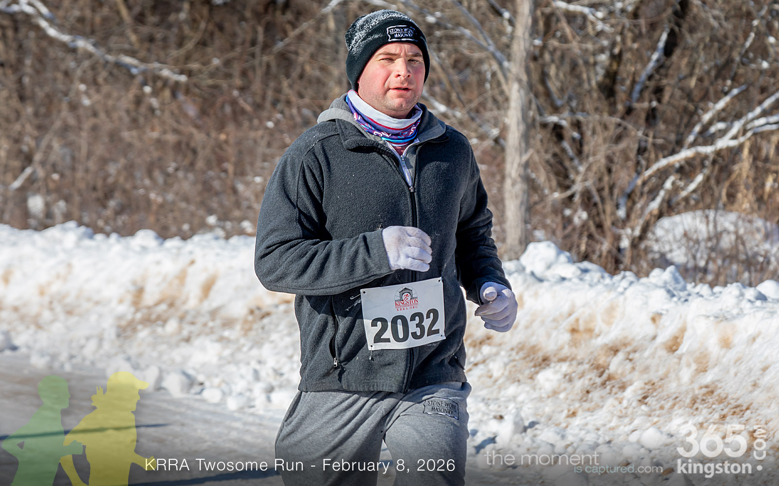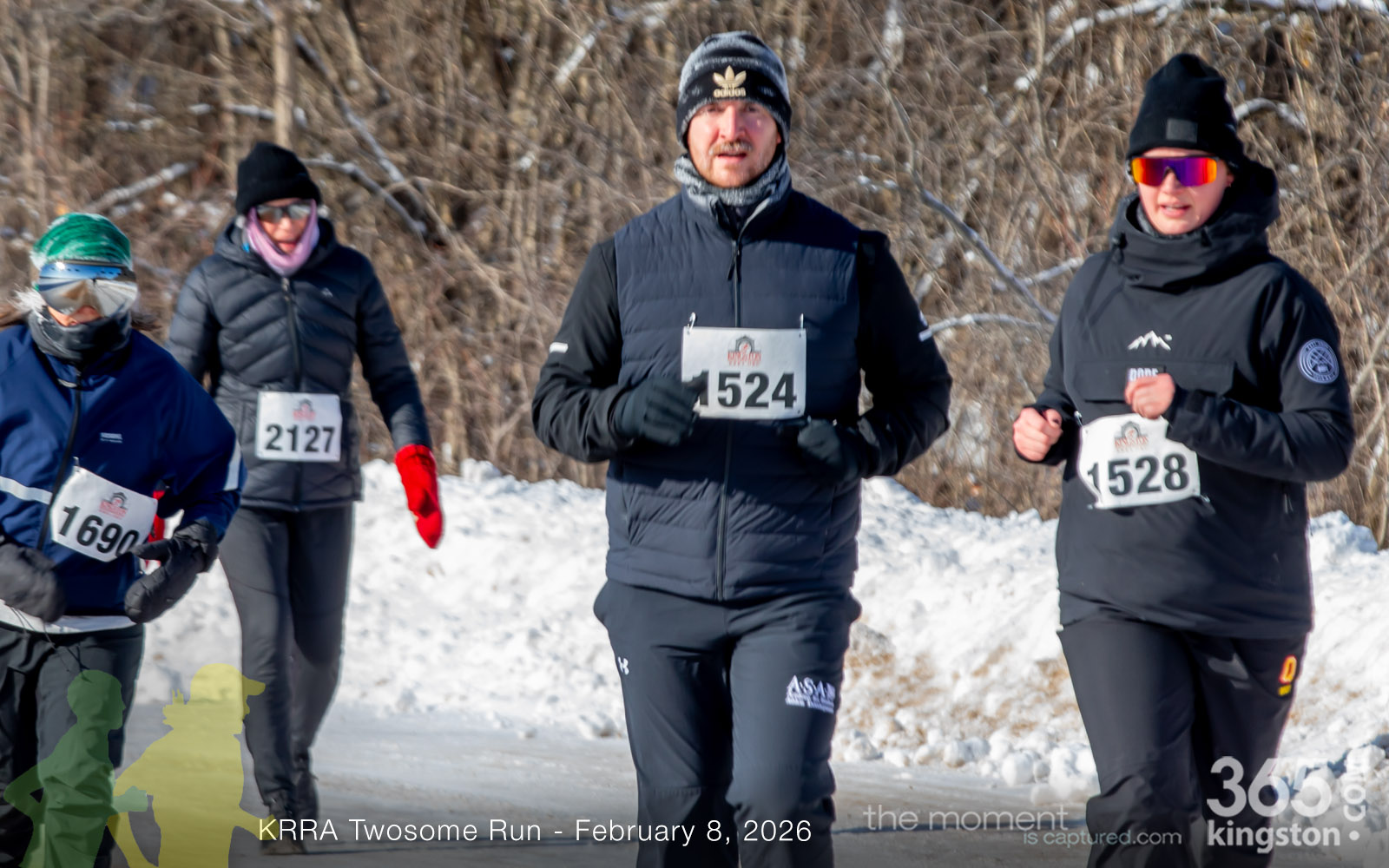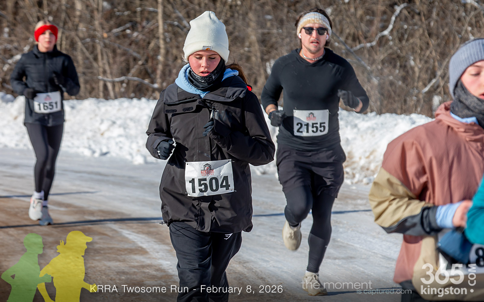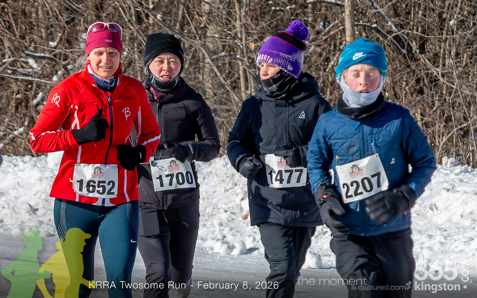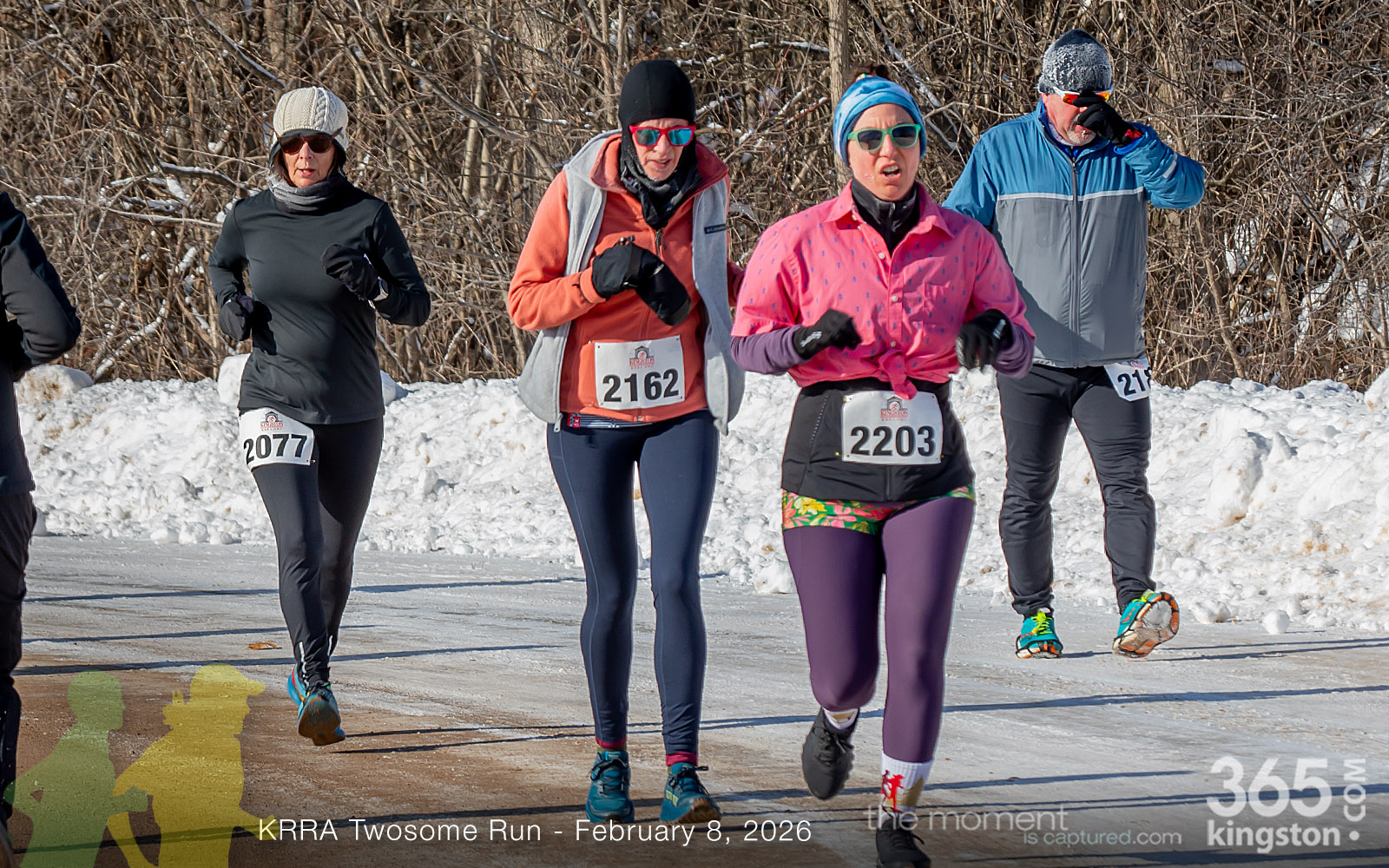 The coldest Kingston road race ever? Perhaps. But that didn’t stop 128 dedicated runners to bundle up, strap on their runners with the best tread, and earn their Twosome socks. To all who ran the event: congratulations! You are winter warriors. Thanks goes out to KRRA’s Race Director Stuart, volunteers, and sponsors who made this event a success.