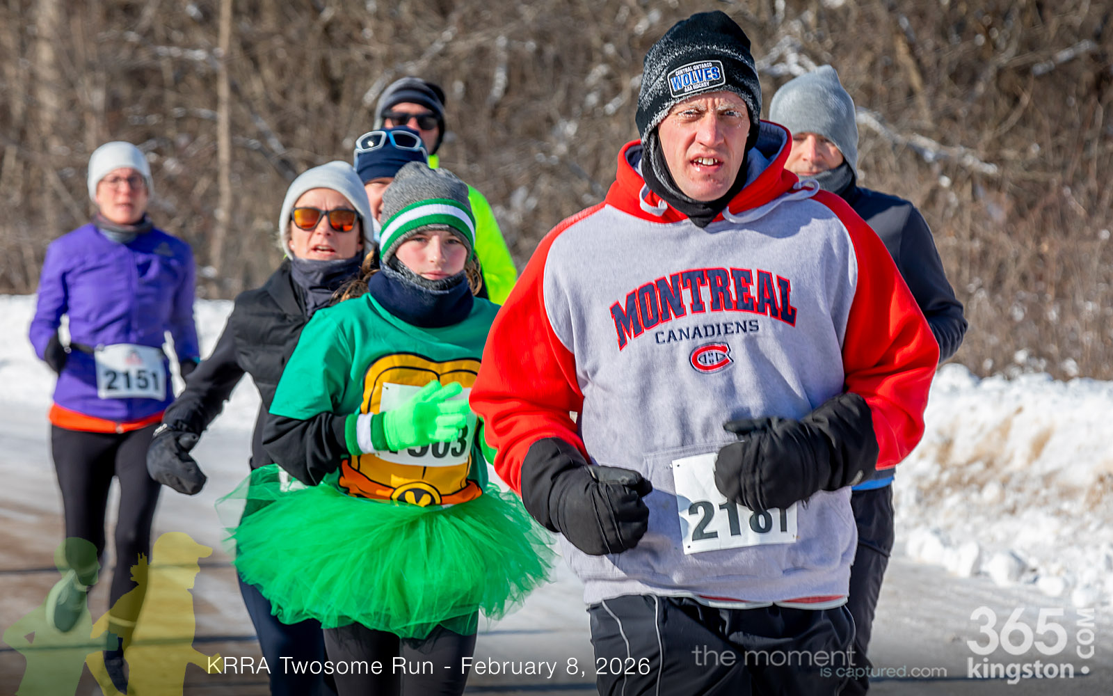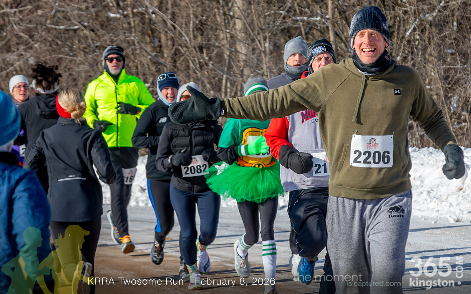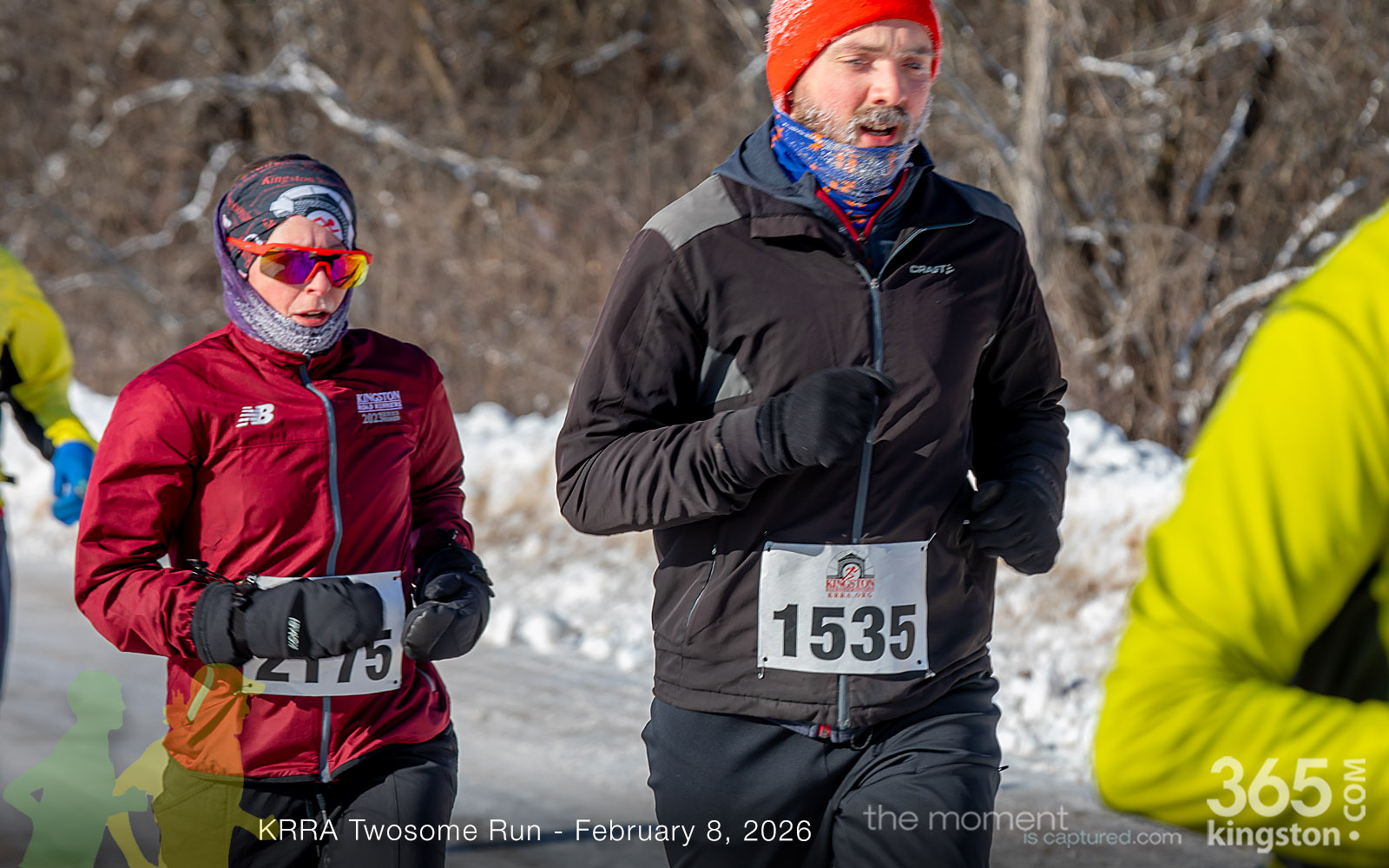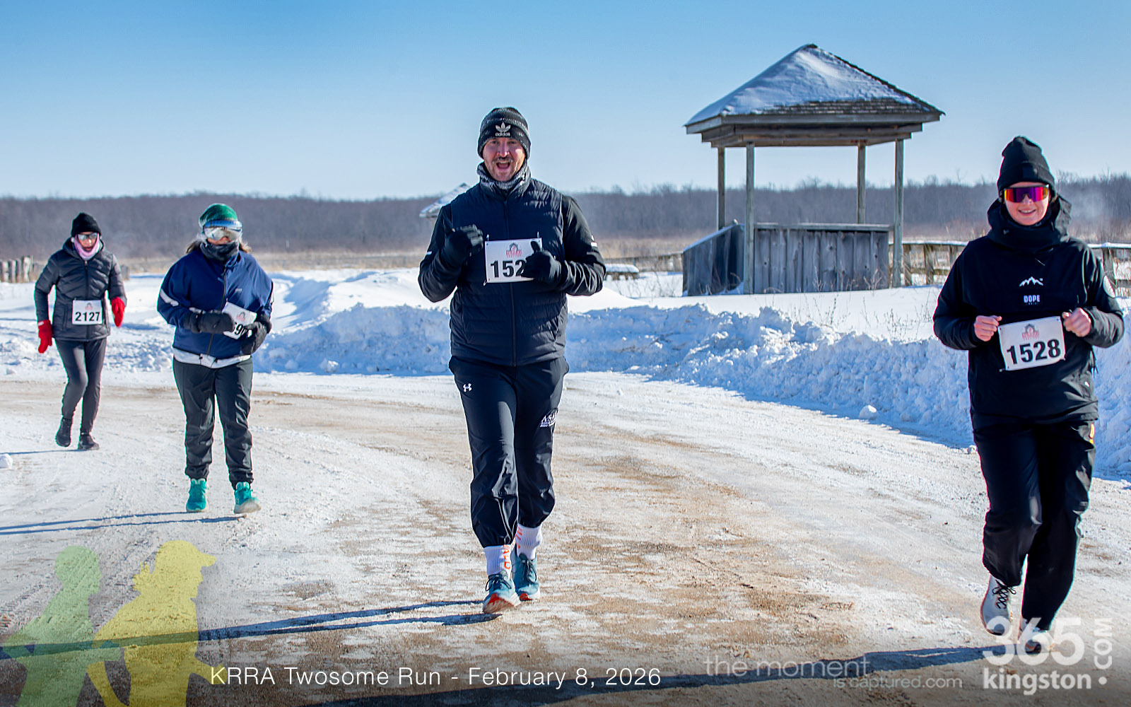The coldest Kingston road race ever? Perhaps. But that didn’t stop 128 dedicated runners to bundle up, strap on their runners with the best tread, and earn their Twosome socks. To all who ran the event: congratulations! You are winter warriors. Thanks goes out to KRRA’s Race Director Stuart, volunteers, and sponsors who made this event a success.